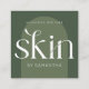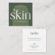 Minimal boho aesthetician or skin specialist business card with modern fonts and sage green color scheme. The modern font design reads 'skin' and 'hello' and adds a really elegant feel to this bohemian calling card design, perfect for your beauty salon or skincare boutique. You can customize this dermatologist business card with your brand colors, logo and business details to make it your own.