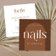 Mínimo artista de uñas boho o tarjeta de visita del técnico con fuentes modernas y esquema de color de terracota. El diseño retro de las fuentes dice "uñas" y "hola" y le da un toque de moda a este bohemio diseño de tarjetas de visita, perfecto para su salón de uñas. Puede personalizar esta tarjeta de visita con sus colores de marca, logotipo y detalles de negocio para hacerlo suyo.