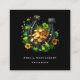 Tarjetas de visita con una imagen temática del Día de San Patricio. Una herradura negra y dorada sentada en una cama de trébol verde con monedas de oro brillantes.