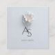 Tarjeta De Visita Cuadrada Monogram Minimalist Floral White Blue
