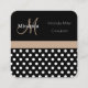 Tarjeta De Visita Cuadrada Monograma Beige Punto de Polka Blanco Negro