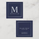 Tarjeta De Visita Cuadrada Monograma elegante azul marino y plateado