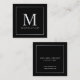 Tarjeta De Visita Cuadrada Monograma elegante negro y plateado
