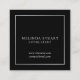 Elegante diseño elegante con monograma, nombre y detalles en estilo de fuente profesional plateado con borde cuadrado plateado sobre fondo negro. Perfecto para un diseñador, estilista, consultor, inmobiliario y muchas otras profesiones. Nota: Los detalles del Relieve metalizado se simularán en la obra de arte. Este producto no contará con ningún relieve ni capa que creen un efecto metalizado.