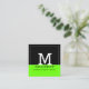 Tarjeta De Visita Cuadrada Monograma verde brillante negro moderno profesiona