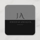 Tarjeta de visita cuadrada de Moda moderna en negro y gris monogramada.