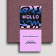 Este diseño moderno tiene la palabra Hello, en negrita, en un abstracto asimétrico en negro, con azul marino, y lila, morado claro.