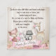 Niña trae una tarjeta de libro con dulces animales del bosque en acuarela sobre un fondo floral en madera rústica y acuarela. Esta adorable tarjeta de bosque trae un libro fácilmente personalizable con el texto de tu elección, y en la parte trasera puedes elegir entre un fondo de acuarela rosa claro o madera.