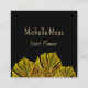 Tarjeta de visita para el planificador de eventos dorados y negros con hojas de palma monstera y diseño de tipografía, añades tu propio nombre y título. Una forma profesional de dar a conocer tu negocio.