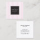 Tarjeta De Visita Cuadrada Panadería de rayas blancas y rosadas retro