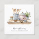 An elegant personal chef and caterer's business card featuring an artistic illustrated watercolor chef's table of pots, utensils, and herbs. Customize with your contact information on the back.