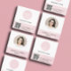 Tarjeta De Visita Cuadrada Pink Logo QR Code Photo Square Business Card