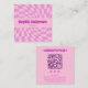 Tarjeta De Visita Cuadrada Pink Retro Groovy Wavy Checkered with QR Code