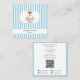 Tarjeta De Visita Cuadrada Preppy Brown & Blue Stripes Bakery Logo QR Code