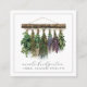 Una carta de negocios sencilla y moderna con productos de cuidado de hierbas aromáticas con hierbas secas colgando de una rama. Sustancias botánicas de acuarela rústicas.
