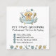 A delightful, customizable business card designed for pet grooming professionals. The template features a cheerful golden retriever puppy in a washbasin, accented by olive branches and grooming tools. The soft cream background and teal accents provide a warm, professional look. Easily personalize the text fields with your business name, phone number, email, physical address, and website to create a unique branding tool for your pet styling business.