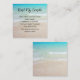 Tarjetas de visita cuadradas con dos áreas de texto personalizado. Creada como una tarjeta de "alquiler mi condo", esta pequeña tarjeta podría ser utilizada para cualquier publicidad que necesite un tema de playa tropical. Al revés, la playa es la misma.
