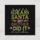 Tarjeta De Visita Cuadrada Querido Santa, mi hermano lo hizo Navidades divert