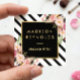 Tarjeta De Visita Cuadrada Rayas blancas negras modernas marco dorado floral