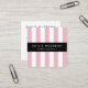 Tarjeta De Visita Cuadrada Rayas rosas, franjas blancas, patrón rayado