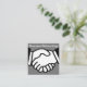 Plantilla de tarjeta de presentación de redes de negocios en un formato cuadrado único con la imagen de las manos temblando representando la colaboración y cooperación y la información de contacto en la otra cara.
