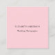 Un fondo rosa suave. Atrás: Plantillas para su nombre, título, número de teléfono, dirección de correo y sitio web, código QR para su sitio web. Iconos de Facebook e Instagram.