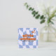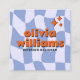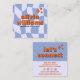 Tarjeta De Visita Cuadrada Retro Blue Orange Bold Groovy Checkered Trendy Fun