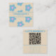 Tarjeta De Visita Cuadrada Retro Cream Blue QR Code Groovy Floral Fun Boho