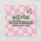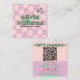 Tarjeta De Visita Cuadrada Retro Pink Green QR Code Groovy Checkered Girly