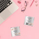 Un fondo falso plateado, con venas de mármol dorado rosa. Personalice y agregue su nombre y texto al frente. Atrás: Plantillas para tu nombre, título, número de teléfono, dirección de correo y sitio web, código QR a tu sitio web o cuenta de medios sociales. Perfecto para empresarias, consultoras, dueñas de negocios.