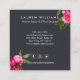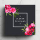 Este lujoso diseño cuenta con ilustraciones de rosas acuáticos brillantes de color rosa/rojo con hojas que se superponen con un marco blanco que sostiene tu nombre o nombre de negocio. El elegante diseño es de doble cara para permitir un amplio espacio para tu información de contacto en el reverso de la tarjeta. El contraste entre el rosa claro y el gris oscuro aporta riqueza y profundidad al diseño. Perfecto para profesiones creativas como estilistas, diseñadores de moda, pintores de uñas, organizadores de eventos, artesanos, diseñadores de interiores y más. Arte y diseño de acuarelas originales © 1201AM