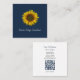 Tarjeta De Visita Cuadrada Rustic Sunflower QR code Boho Navy Blue