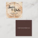 Tarjeta De Visita Cuadrada Rústica personalizada Salven la fecha Madera impre