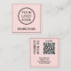 Tarjeta De Visita Cuadrada Scannable QR Code Modern Blush Pink Black Digital