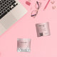 Una tarjeta de visita elegante y glamurosa sobre fondo de gradiente rosa decorada con polvo falso purpurina plateado en el frente y equipo de limpieza. Personaliza y agrega tu nombre, información de contacto de texto y tu propio código QR a tu dirección de sitio web.