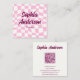 Stand out with this fun and trendy square business card featuring a pink wavy checkerboard pattern and bold script name. The playful yet stylish design makes networking memorable and helps your brand feel modern and friendly. The back of the card includes a customizable QR code, allowing clients to instantly access your website, booking link, portfolio, or social media with one quick scan.