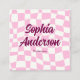 Tarjeta De Visita Cuadrada Trendy Pink Checkerboard with QR Code