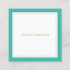 Esta elegante y femenina tarjeta de visita cuadrada de plantilla presenta un grueso borde turquesa y dorado delgado. Coloque su nombre o nombre de negocio en la parte delantera de la tarjeta e información en la parte posterior de esta tarjeta de visita.