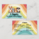 Cuatro adorables cachorros sobre fondo arcoiris. Tarjeta de visita de mascota Sitter y Perro Walker