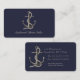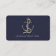 Abrigos blancos de la cuerda alrededor de un ancla de mirada realista en esta tarjeta de visita de los azules marinos. El texto es adaptable.
