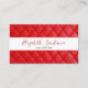 Destacar con esta audaz y lujosa tarjeta de negocios de cuero rojo, diseñada con un patrón de costura al estilo de los diamantes para un aspecto refinado y de alta gama. La parte frontal presenta una franja blanca elegante para su nombre y título, mientras que la parte posterior incluye un cuadrado blanco limpio para mostrar su información de contacto. Perfecto para profesionales de la moda, el automóvil, el sector inmobiliario o cualquier industria en la que la marca fuerte y segura sea clave. Personalizable total con tus datos personales.