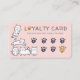 La tarjeta de fidelidad perfecta para su negocio de servicios de cuidado de mascotas. Hemos ilustrado a estos lindos y adorables gatos gatitos en diferentes posiciones. Los adorables personajes de animales son perfectos para representar a una niñera mascota, mascota, cuidado de mascotas, adopción de mascotas, veterinarios y mucho más! La "Tarjeta de Lealtad" está diseñada en una tipografía moderna con una huella de pata en forma de corazón que representa la letra "O" en la palabra "Lealtad". Huellas de pata en forma de corazón con números para sellar la visita de cada cliente. Puede eliminar las huellas de la pata para personalizar de su oferta promocional. El fondo, la fuente y los colores se pueden personalizar. Todos los ilustraciones son obras de arte originales hechas a mano por Moodthology.