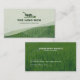 Promueva su cuidado del césped o su negocio de paisajismo con estas tarjetas de negocios verdes de césped. El lavabo de color acuático está cubierto por un frondoso césped. El diseño viene con un icono de Lawnmower o puedes cambiar el icono a tu propio logotipo de empresa. Texto personalizar para hacer que el diseño se ajuste a su negocio de paisaje.
