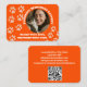 Make your feline brand unforgettable with this bold and heartwarming business card, designed especially for catteries and cat breeders. Featuring a bright emergency orange background with playful paw prints, a customizable photo, and editable contact details, this card is ideal for networking with future pet parents, vets, or pet lovers.