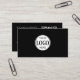 Black add your own logo professional business card with QR code and social media icons on the back.
