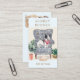 Un lindo caminante de canguro acuarela y una tarjeta de visita para mascotas, con un bulldog francés en una silla.