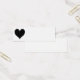 Forma de corazón negro suave contra un fondo blanco. Minimalista diseño de tarjetas de visita en blanco. Añade tu información de contacto. Cree un mensaje de texto de agradecimiento para los clientes.