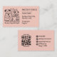 ¡Un adorable mascota coge una tarjeta de visita con un código QR! Este encantador diseño presenta un fondo de melocotón con una adorable imagen gráfica de lindos gatos y perros. Personaliza esta tarjeta con tu nombre, negocio, dirección, número de teléfono, correo electrónico y sitio web. Es la herramienta perfecta para proveedores de servicios mascotas como veterinarios, caminantes de perros, comensales y entrenadores. Muestra tu profesionalismo y haz una impresión duradera con esta atractiva tarjeta de visita. Permita que sus clientes se conecten fácilmente con usted mediante la exploración del código QR para obtener acceso instantáneo a su información. Personalizar la "llamada a la acción" para dirigir a los clientes a su calendario, referencias o precios que las opciones son interminables. ¡Consigue tus fuerzas en este negocio imprescindible hoy!