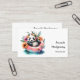 Tarjetas de visita con una adorable imagen de verano. Un diseño acuático con un panda blanco y negro sentado en una junta de natación en el agua. Rodeado de flores silvestres de bonito. Un oso totalmente frío.