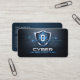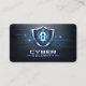 This modern cyber security business card features a bold, high‑tech design created for IT professionals, security analysts, penetration testers, ethical hackers, and digital protection specialists who want a strong, trustworthy first impression. The front showcases a sleek metallic shield with a keyhole icon, surrounded by circuit‑board graphics and clean digital lines that instantly communicate data protection, network security, and advanced technology. A powerful blue and silver logo, giving the card a premium, authoritative look that stands out in the cybersecurity and IT services industry. The dark background, metallic accents, and futuristic layout create a polished, professional aesthetic that reflects expertise in threat detection, system hardening, vulnerability assessments, and digital defense solutions.